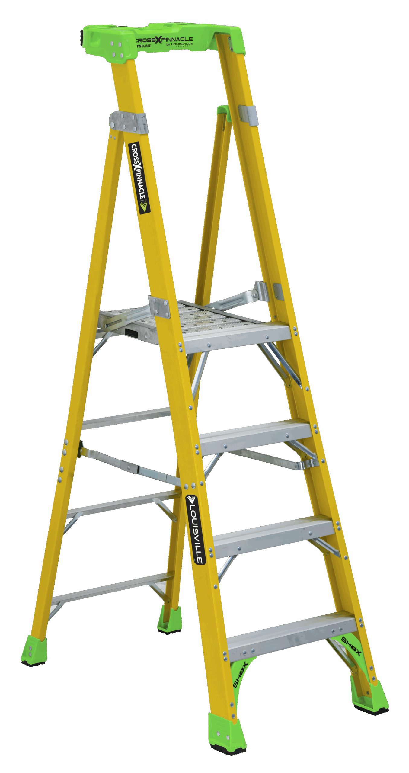 We invented the Cross Pinnacle Platform Step as the ultimate tool for a secure leaning platform ladder, and we we added our exclusive HiVis green to make it clear at a glance that your worksite is compliant. This 2 in 1 ladder is sure to be your go to tool.