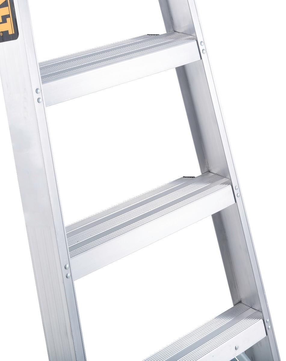 This 3-foot DEWALT aluminum step ladder has a load capacity of 300 lbs, rated ANSI Type IA. This ladder is equipped with a durable top with magnet and multiple tool slots, automatic closing pail shelf, slip-resistant aluminum shoes, heavy-duty gusset bracing, and has a 25% greater step surface. This DeWalt DXL2010-03 step ladder meets or exceeds the safety standards set by ANSI and OSHA.