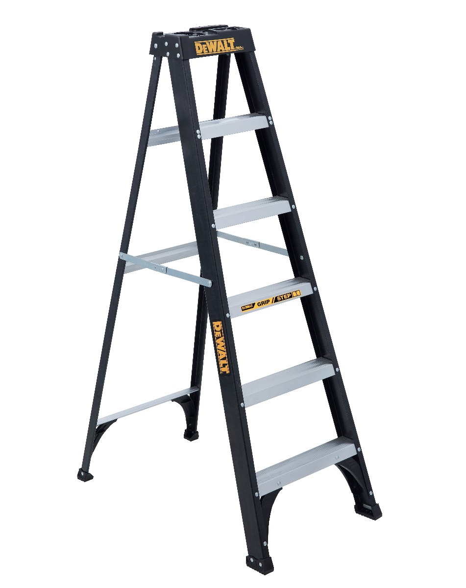 This 4-foot non-conductive DEWALT fiberglass step ladder has a load capacity of 250lbs, rated ANSI Type I. This ladder features an innovative top with magnet and multiple tool slots, an impact absorption system, slip-resistant aluminum shoes, wide back braces, and double-rivet step construction. This DeWalt DXL3110-04 step ladder meets or exceeds the safety standards set by ANSI and OSHA.