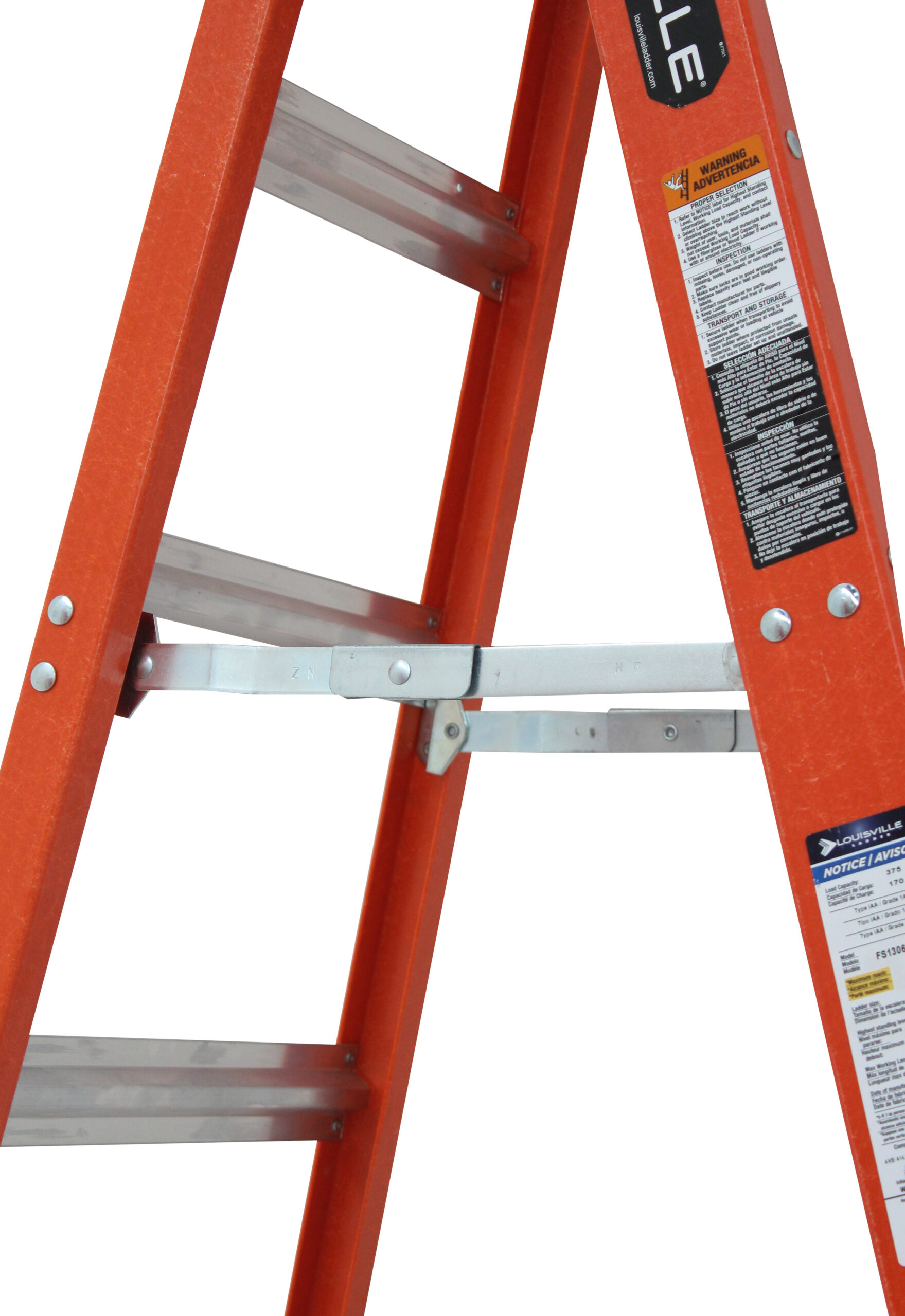This Louisville 12 foot non-conductive fiberglass step ladder has a load capacity of 375lbs, rated ANSI Type IAA. This ladder is equipped with a heavy-duty gauge metal top, slip-resistant boot, inside spreader braces, heavy-duty gusset bracing, and double-rivet step construction. The Louisville FS1312HD step ladder meets or exceeds the safety standards set by ANSI and OSHA.