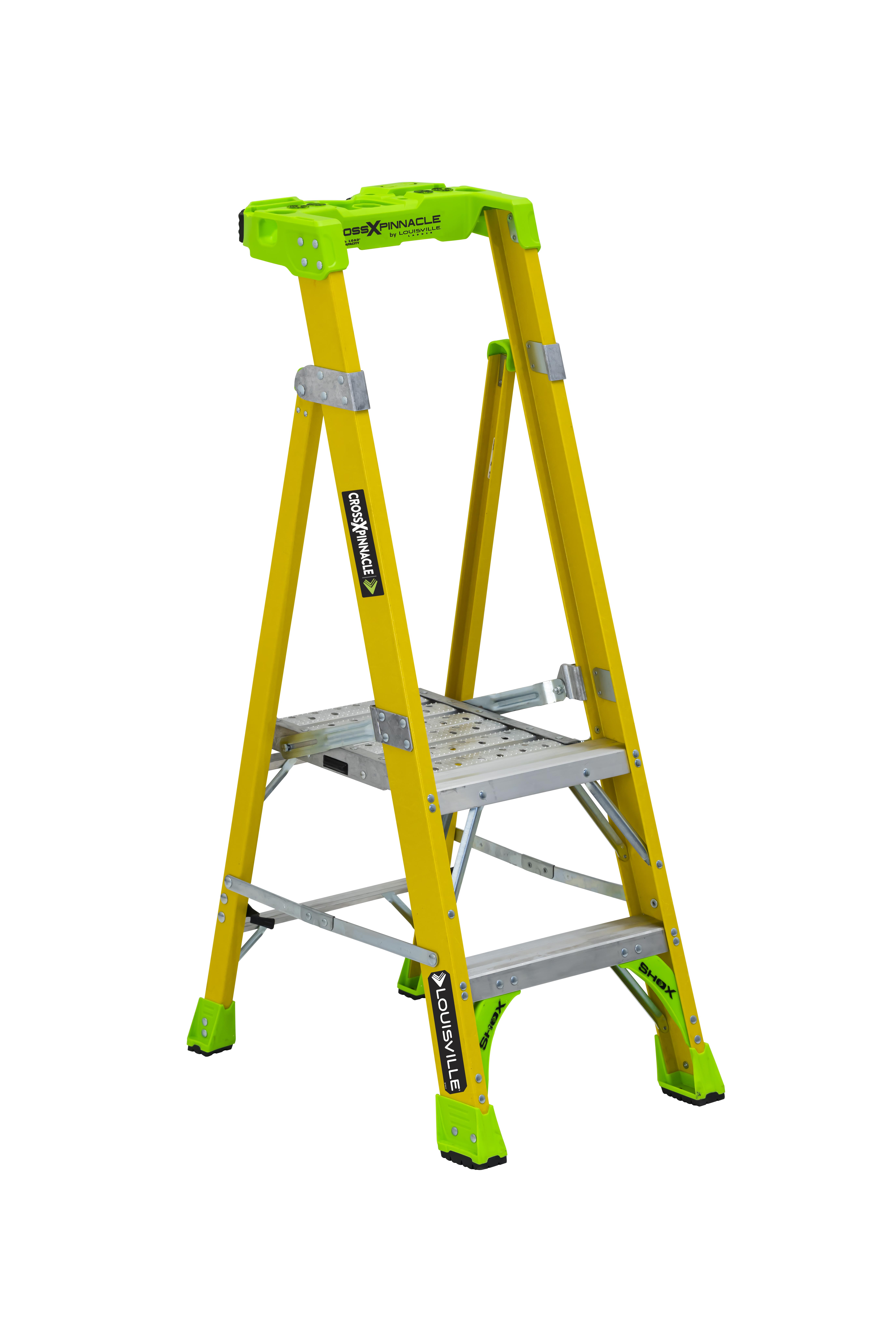 LOUISVILLE LADDER 2-FOOT FIBERGLASS CROSS PINNACLE PLATFORM AND LEANING STEP LADDER, FCP1402HD
