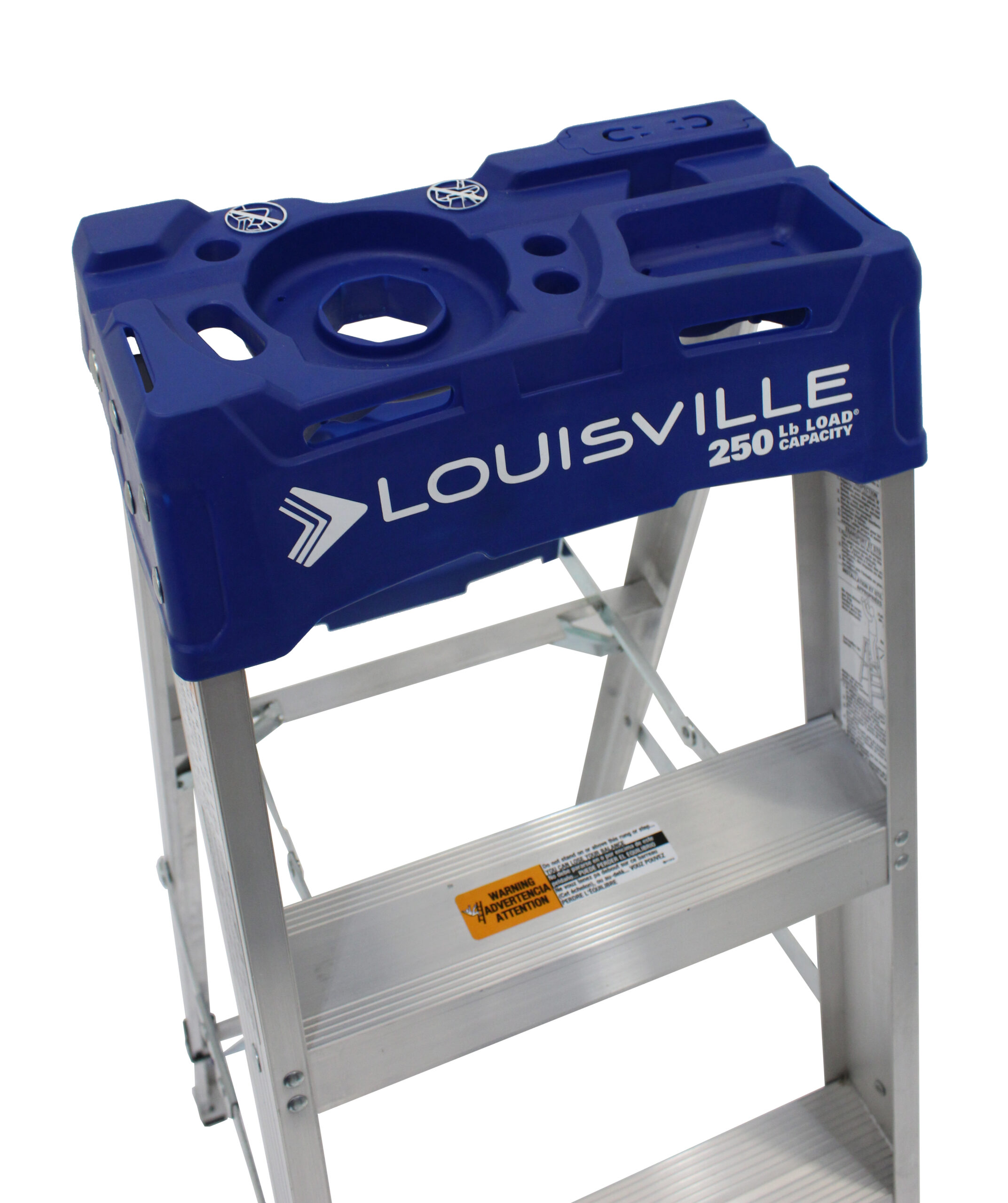 This Louisville 4 foot lightweight aluminum step ladder has a load capacity of 250lb, rated ANSI Type I. This ladder is equipped with the innovative ProTop with a magnet and multiple tool slots, molded pail shelf, angled aluminum slip-resistant rubber feet, steel gusset bracing, and pinch-resistant spreader braces. This ladder is ideal for painting. The Louisville AS2104 step ladder meets or exceeds the safety standards set by ANSI and OSHA.