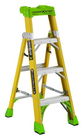 The industry changing Step-to-Extension 2-in-1 Cross Step Ladder is better than ever! Its HiVis green top and shoes makes it easily identifiable to prevent fines and improve workplace safety. SUPERIOR SAFETY: This 4-Foot Cross-Step/Shelf Ladder is made of superior quality, non-conductive fiberglass VERSATILE: Converts from a step ladder into a shelf ladder for a 2 in 1 combination in order to get closer to the work area PATENTED PROTOP™ SYSTEM: V-shape ProTop™ allows the ladder to lean against walls, buildings and poles; and has plenty of features to improve performance when working electrical, construction, and residential jobs. It includes a magnet tray, hardware tray, drill and tool slots, and pipe or 2×4 holder. EQUIPPED WITH SHOX™ SYSTEM: Louisville Ladder exclusive SHOX™ system provides extra durability and resistance to abuse and accidental mishandling. STURDY AND STRONG: With its 375-Pound capacity, elegant design and smooth finish, you won’t find a more durable, reliable ladder. ABOVE AND BEYOND SAFETY STANDARDS: This ladder meets or exceeds the safety standards set by ANSI and OSHA